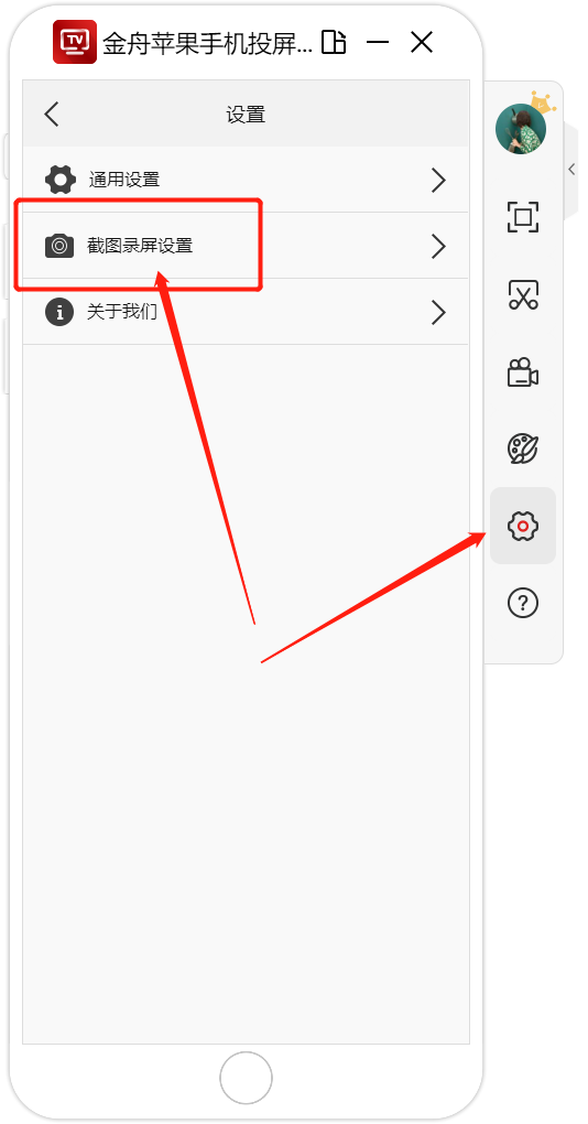 第三步、点击右侧的扩展按钮,选择设置-截图录屏设置;
