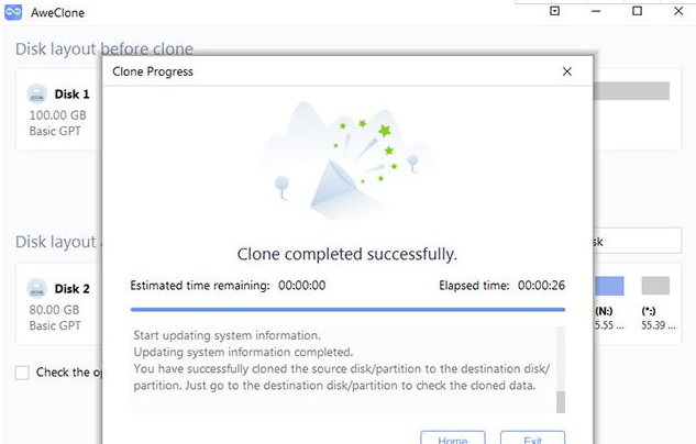 第4步:克隆完成。 克隆过程完成后,源磁盘将克隆到目标磁盘。您可以检查目标磁盘。