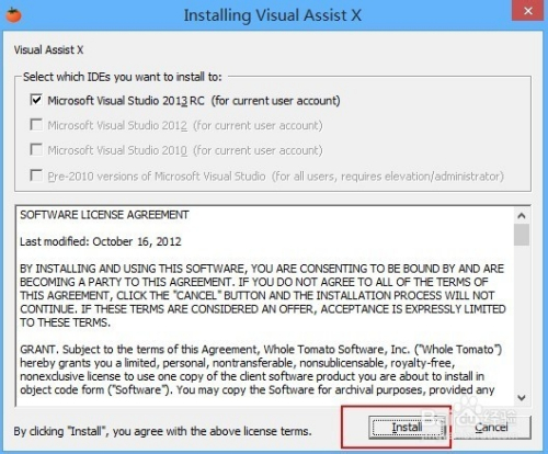 双击上图红色方框内的文件,进行安装的第一步操作,双击后打开如下的页面,系统会自动默认选择第一项,并单击“Install按钮进行安装,如下图