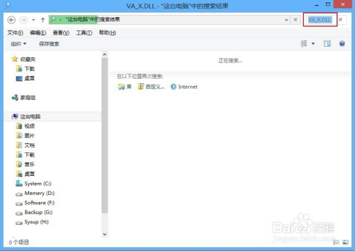 安装完成之后打开资源管理器(可以直接按快捷键Win+E),在右上角的搜索框内搜索文件VA_X.DLL
