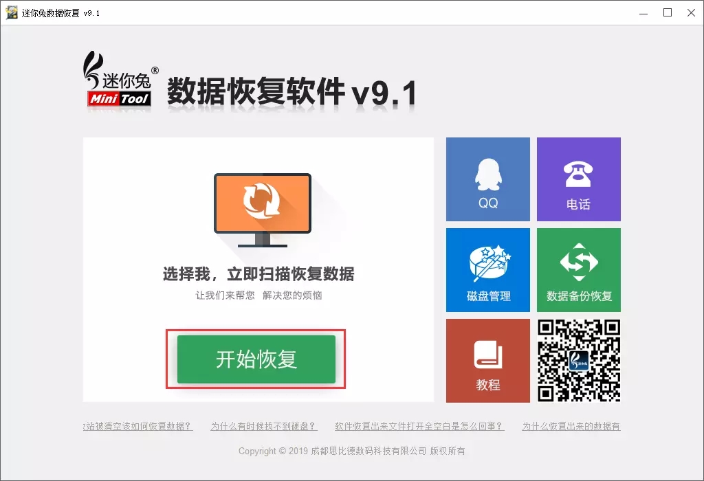 1、打开迷你兔数据恢复软件,其主界面如图,点击【开始恢复】。