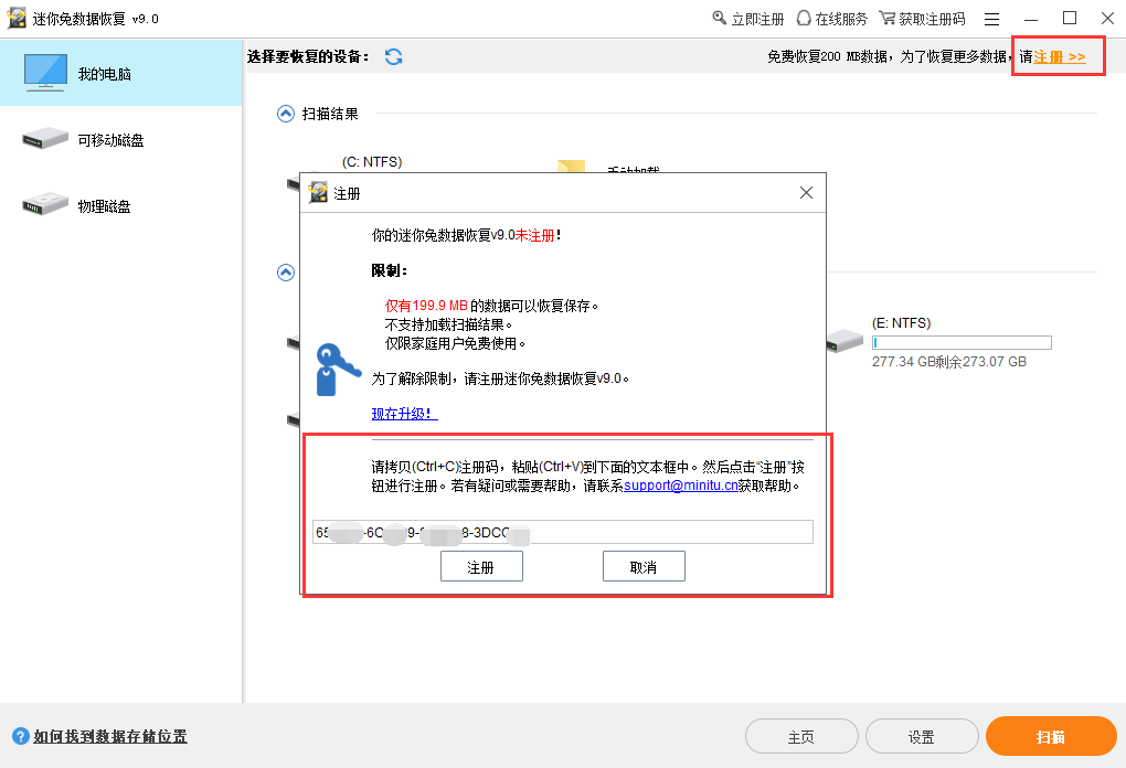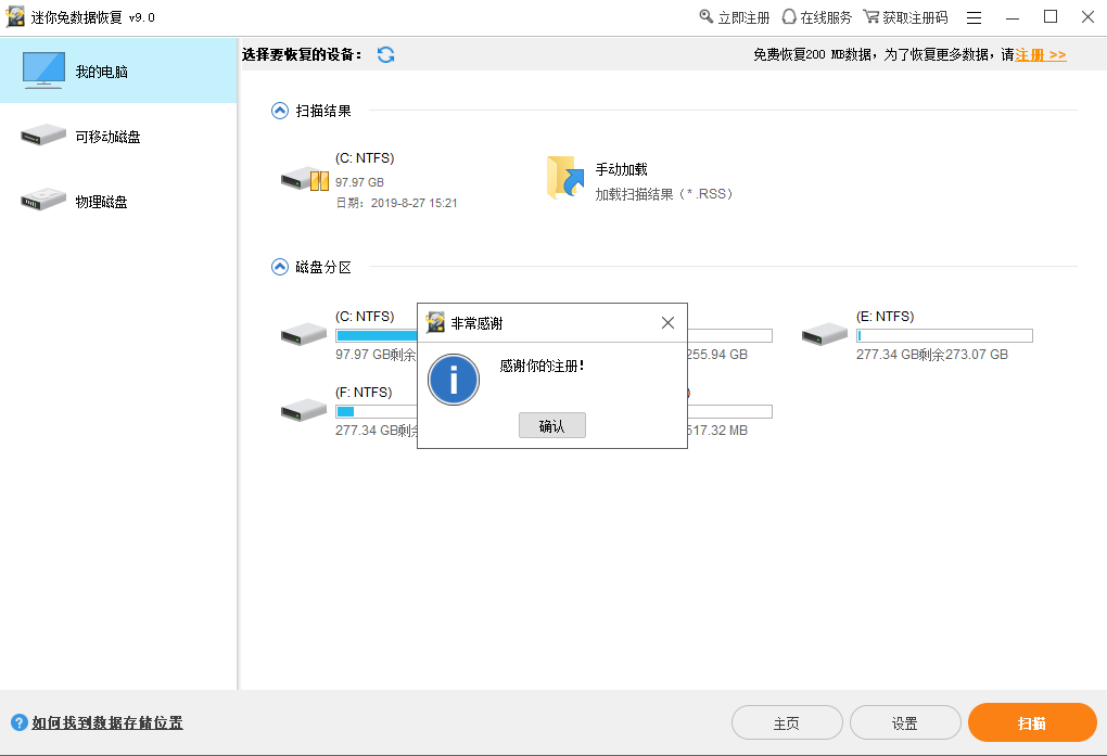 离线注册激活成功后,您就可以放心使用迷你兔恢复数据了。