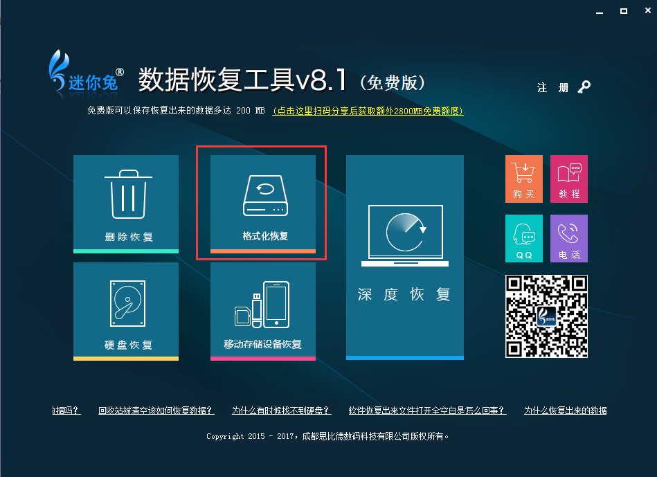 第一步:打开软件,在操作主界面选择格式化恢复并点击进入。