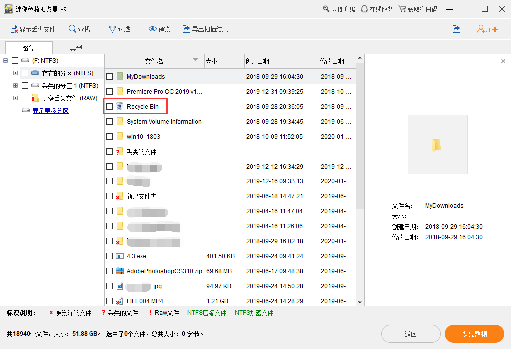 注意:删除数据并非全部都在Recycle Bin文件夹中,只是我们建议您优先查看此文件夹。