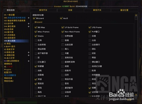 是不是看了EUI的简洁风格(都是黑色打底)有些不习惯呢,没有关系,我们还是可以在很多地方还原WOW原有风格的。打开EUI设置"美化皮肤",希望原风格的就把前面的勾去掉。