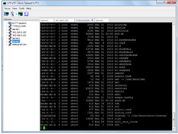 MTPuTTY支持清除标签用户界面。 服务器分组在侧边栏。 任务栏快速访问基本的程序任务。 任何PuTTY选项卡都能分离并转换成普通的PuTTY窗口