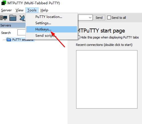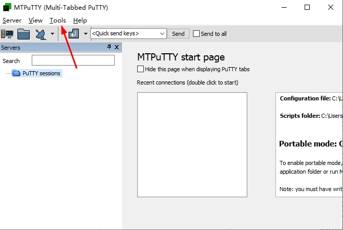 1、软件默认是没有快速切换的热键的,因此我们需要去设置自己映射一下。打开MTPuTTY,然后选择上方的Tools工具。
