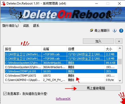 Delete.On.Reboot管理资源管理器与系统权限。