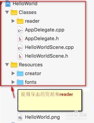 3.实现在cocos2d-x工程里使用导出的资源和reader的操作如下
