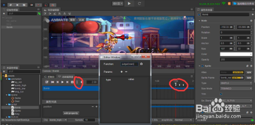 游戏场景中一般会包括以下内容:场景图像和文字,角色,以组件形式附加在场景节点上的游戏逻辑脚本
