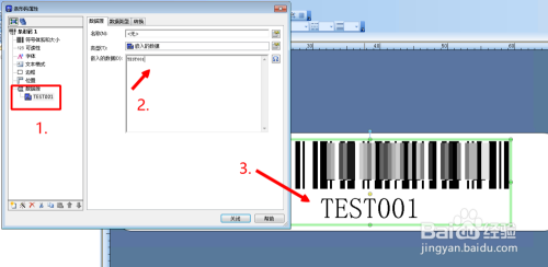 6、在弹出的数据编辑界面上面的大红框里输入相应数据或内容,条形码就会做出对应的改变。