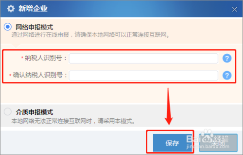 4.输入新增企业的纳税人识别号,再次确认纳税人识别号,点击保存;
