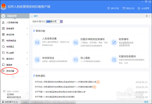 9.自然人税收管理系统扣缴客户端支持一台电脑申报多个公司的个人所得税,通过软件右上角企业管理菜单添加多个企业或多个扣缴单位切换申报。