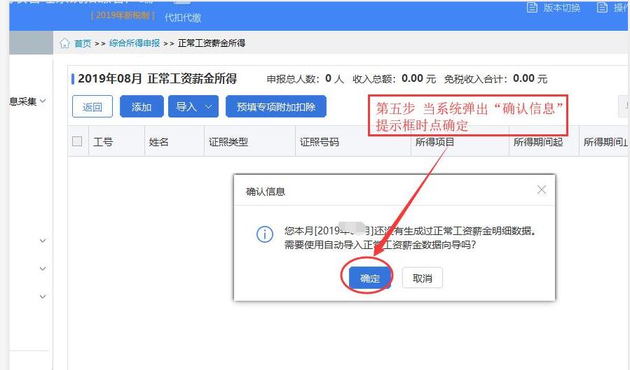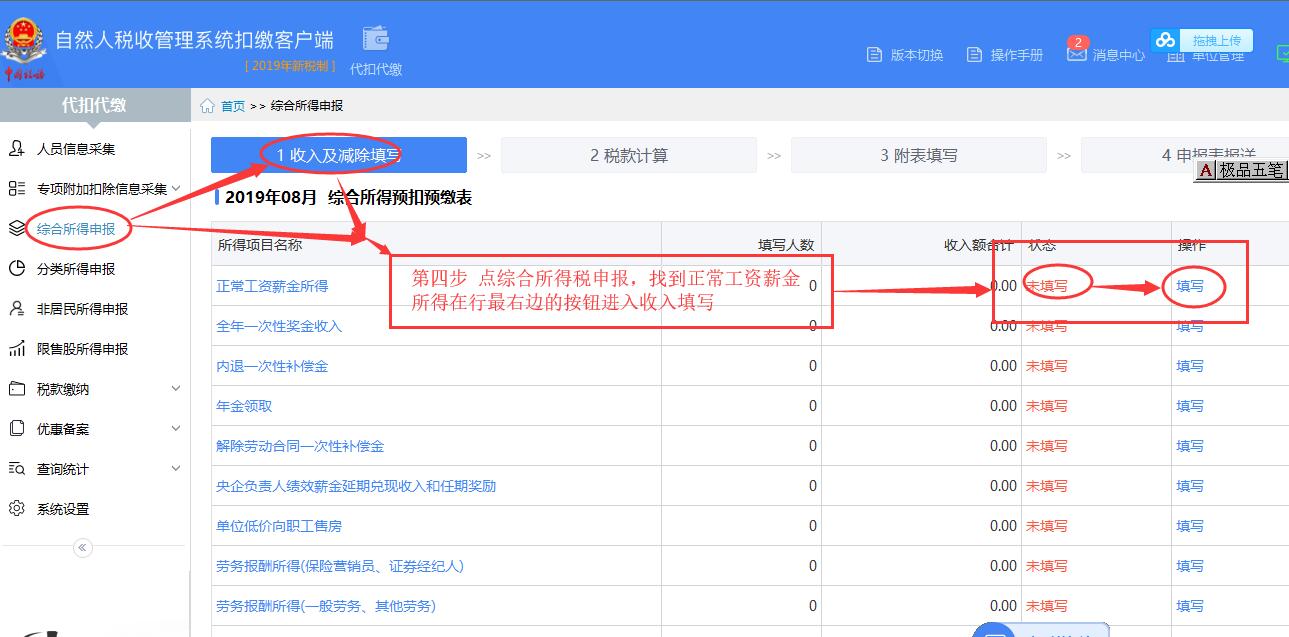 第四步 完成人员信息采集后,点综合所得申报按钮进入收入填写界面。