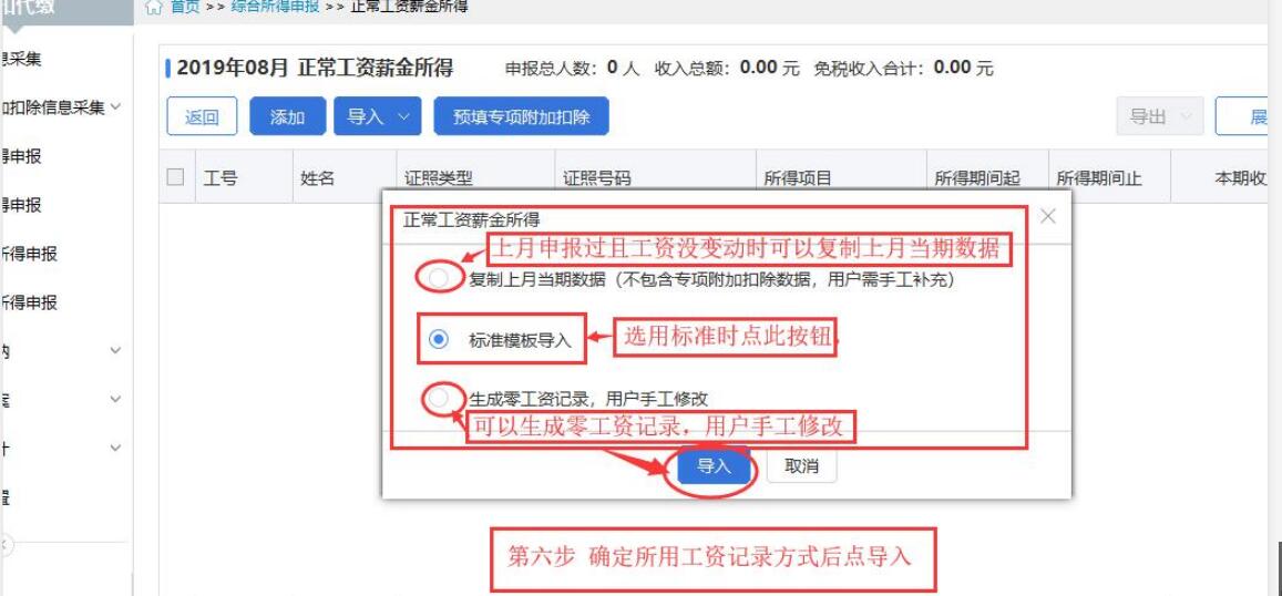 第六步 上月有数据时点复制上月数据,电脑上下载有标准模板并且完成模板数据填写时点标准模板导入,第一次操作系统时点点生成工资记录,用户手工修改。(本例假设为第一次操作系统所以选生成工资记录,用户手工修改)