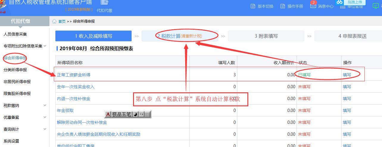 第八步 点计算税款计算系统自动计算税款。