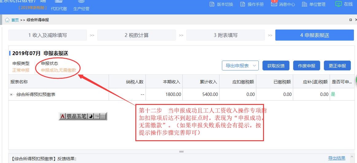 第十二步 当获取的反馈信息为申报成功时完成所有操作,当申报不成功时点获取反馈后系统会提示"申报不成功"并指出问题出现在哪些,按系统提示完善相关操作即可申报成功。如有不明白的线下联系。