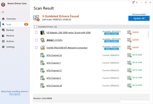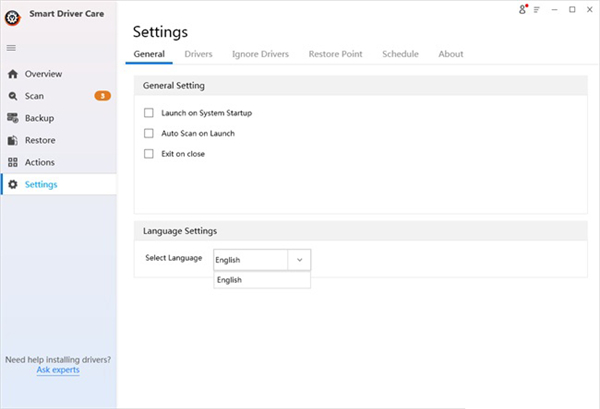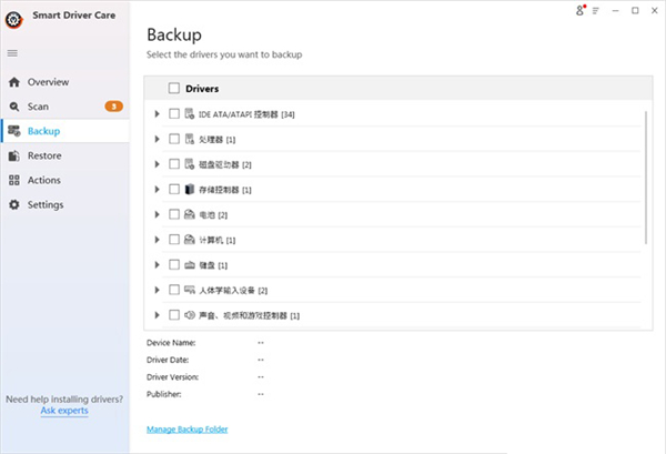 Smart Driver Care提供了在更新为新驱动程序之前对系统驱动程序进行完整或选择性备份的选项。