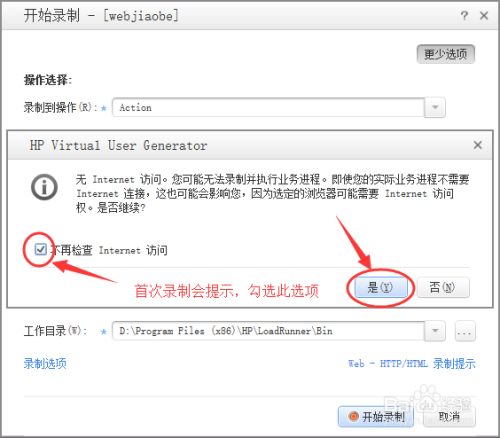 8、然后就开始录制脚本了,LR调用浏览器,进行相应的操作。