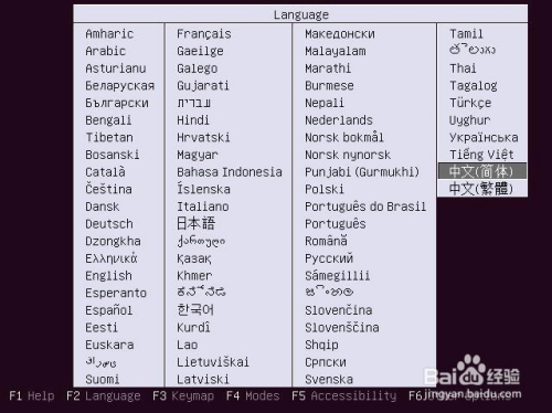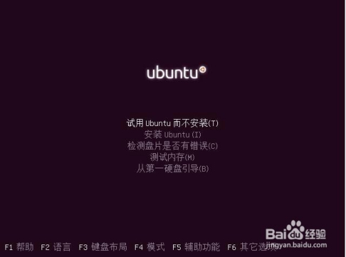 回车选择中文选择第一个使用ubuntu而不安装(t)加到载试用版