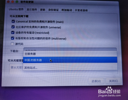 4、将下载自【主服务器】修改为【中国的服务器】。