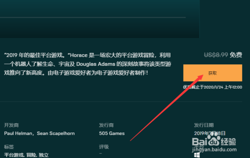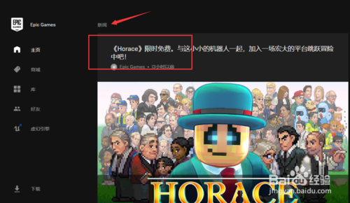 首先打开Epic平台,在首页新闻上面一般就可以看到免费领取本周免费游戏的消息,点击即可进入该游戏的主页。