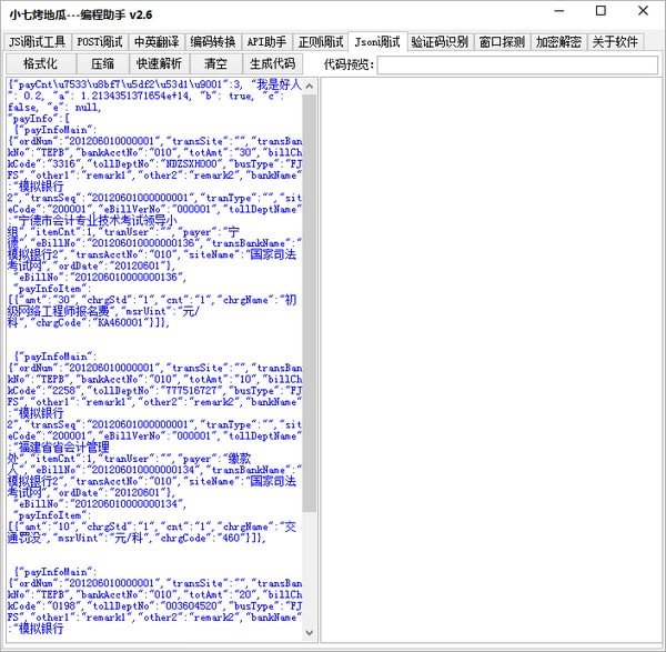 小七烤地瓜编程助手专门是适配软件编程开发中的JavaScript环境,可为开发者提供很多实用性的辅助工具,包括JavaScript的测试以及POST的测试,同时还为各种后台程序源码提供了转换和翻译的工具,所有的功能项都是直接在导航栏内设置到位,从而迅速把项目的源代码完成编辑以及后续的测试完善。