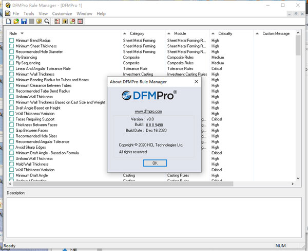 1、以DFM规则的形式提供的开箱即用的行业最佳实践,适用于诸如加工, 注塑, 钣金加工, 铸造 和 装配等 核心制造过程