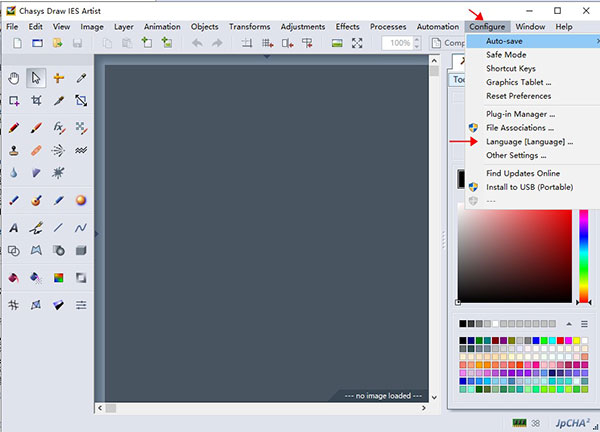 2、点击Configure(配置),选择下拉栏中的language(语言)。
