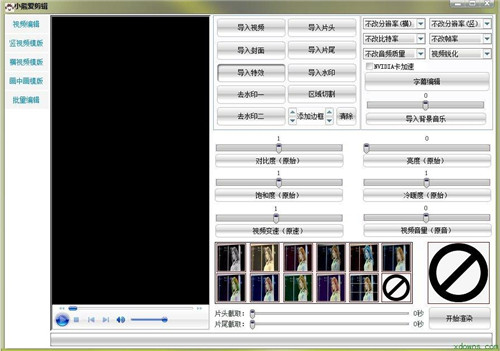 2、功能:添加字幕,添加背景音乐,添加滤镜,添加特效。片头片尾去除,添加片头片尾,添加背景音乐,修改分辨,修改帧,修改比特率,修改音频质量,同时去除多个水印,添加水印,区域切割,添加边框。