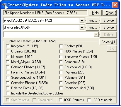 在做定性及定量分析之前需要将PDF数据库载入软件,在主窗口中选择PDF/Setup,将显示如下窗口: