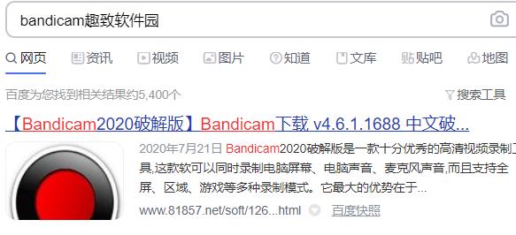 打开,趣致软件园搜索bandicam,选择第一个点击进入。
