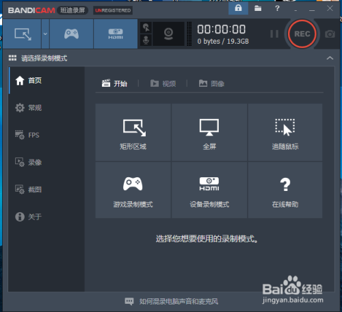 我们打开bandicam,发现班迪录屏右面有个un registered,意为没有注册,下面我们开始注册。