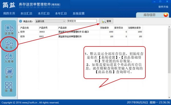 简益库存办理软件默认提供的功能项有送货单、库存、入库单、统计以及整体系统的设置等,另外按照年月日以及表格样式来进行本地库存数据的细致化分类,把握住仓库管理环节同物流环节以及销售环节之间的紧密配合,及时提醒相关人员更迭系统内的数据,定期自动生成数据统计报表来呈现经营情况。