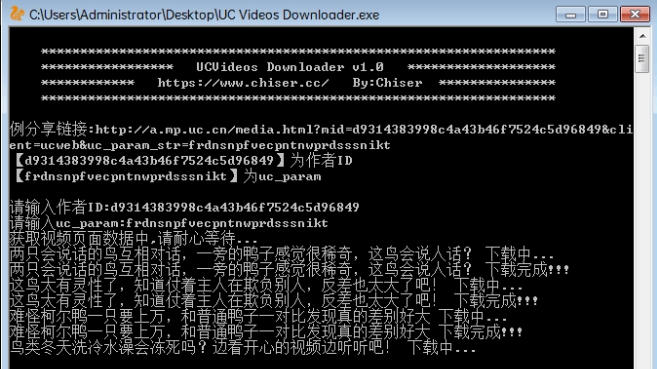 UC Videos Downloader基于UC应用的优质下载技术打造,应用程序启动后会发现是通过电脑后台程序指令的模式产生作用,对接的是阿里互娱旗下的大鱼号站点,上面都是来自于全网各地区的UP主上传的视频资源,凭借本期带来的下载器能够做到各类视频文件后台静默下载以及根据数字ID的先后次序来分类命名。