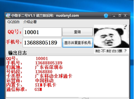 诺兰小助理二号经由民间开发者独立制作完成,其定位是辅助相关需要进行社群营销的用户提供QQ号绑定手机的查询,其内部已经对接了腾讯官方的接口,输入QQ号后点击查询即可,同时还支持复查核实是否对应本人,在日志中展示的非常详细,当然不建议多次发推销信息给同一个号码,被拉黑的话也是情理之中。
