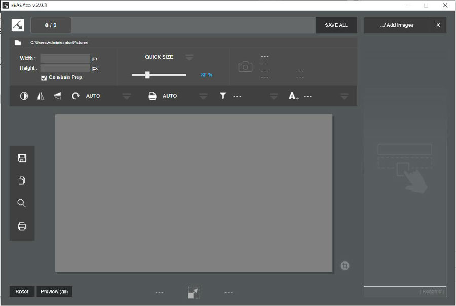rEASYze软件拥有完善化的图像处理流程,同时看重用户上手使用的便利程度,把相关图像处理功能项都以所略图标的样式呈现,迅速完成多个图像文件的大小尺寸设置以及其他各类图像内嵌信息和全新的画面表现效果的改良处置,应付大多数图像的处理完全足够。