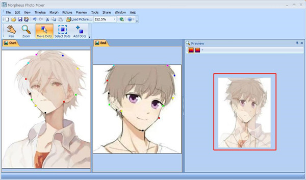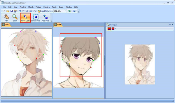 4、再点击add dots,设定好两张图片相互之间的变形对应点;