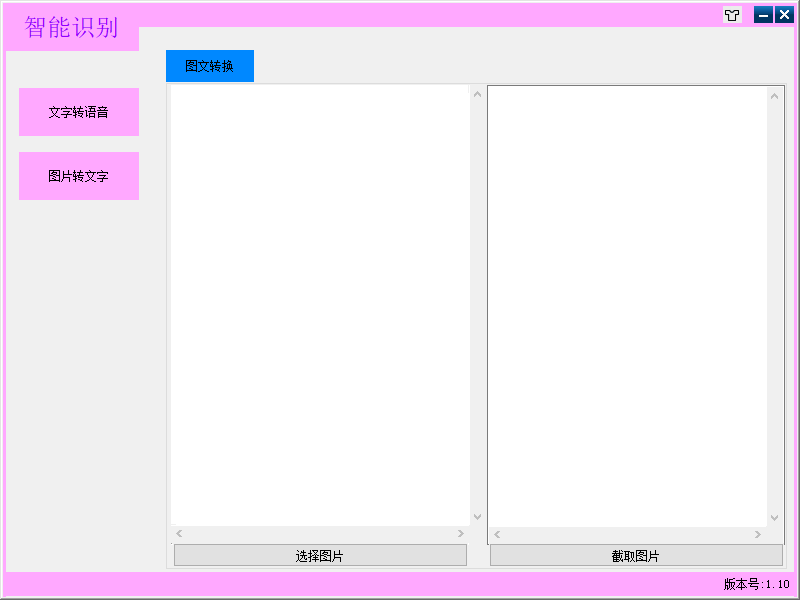 文字转语音软件来自于国内软件论坛,从软件UI设计来看并不是很突出,主要支持文字转语音以及图片转文字两大功能,使用起来毫无障碍,直接从内部文件中引入各类文件,然后点击转换即可,整个过程中不会影响到图文以及语音的素质,且没有其他各种累赘功能,单纯用来辅助转换再合适不过。
