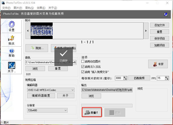 6、可以设置每张图片的时间,婚配音频,翻开日记文件,指定图象分辩率和预览成果