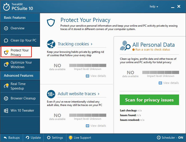 TweakBit PCSuite能扫描垃圾文件,跟踪cookie以及查看网站浏览痕迹,还能够实时进行性能监控和增强等等,让您的电脑始终处在较安全的状态下。它还有更多的工具,可有效帮助您优化电脑。