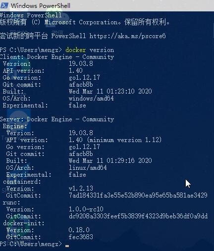 5、一起头会展示starting装,展示Docker Desktop is running,便可以经由终端(例如 PowerSheel)来运用Docker的相干指令了,上面我们将运用Windows 10的PowerShell作为终端来开启操作。