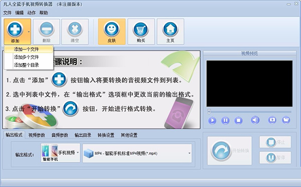 2、 能将各类格式视频转换为智妙手机, 安卓手机所拥有的视频格式;