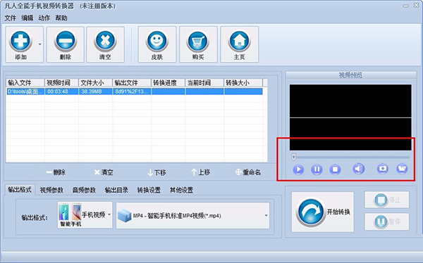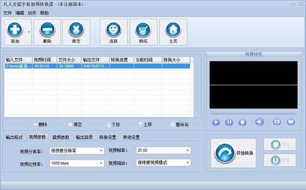 凡人全能手机视频转换器提供预览窗口,您可以将视频中喜欢的画面截取并保存到本地,而且您导入的视频文件会自动显示文件大小、时长等详细信息,您可以在转换完成后比较一下,确保转换过程没有出现错误。