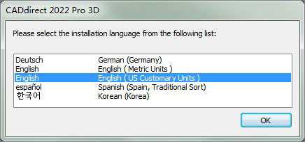 2、翻开文件install-caddirect-2022-pro-x64.msi开启装载,默许选择English说话。