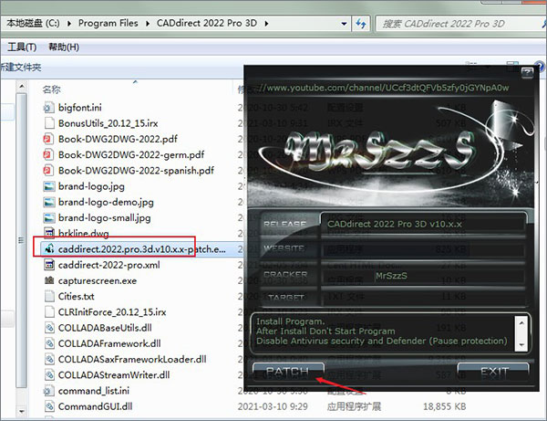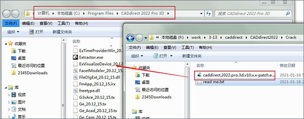 6、将Crack文件夹中的caddirect.2022.pro.3d.v10.x.x-patch.exe复制到软件目次下。默许目次【C:⁄Program Files⁄CADdirect 2022 Pro 3D】