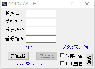 此工具将会每过十秒获取一次监控QQ账号的昵称,内置了三条互相补充的获取接口,避免某一个接口失效。您可以配置自己的关机、重启和睡眠的指令,点击保存内容,在下一次可以直接打开使用。此工具支持开机自启和最小化到托盘运行。