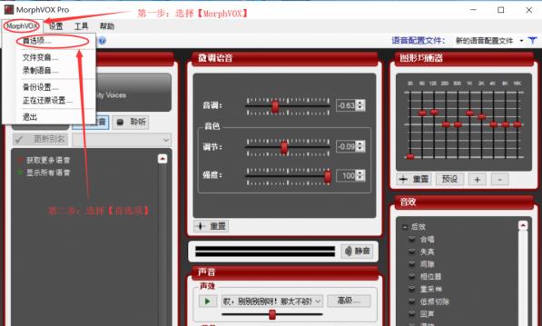 MorphVOX Pro软件的界面设计参考了专业音频工作室,具体分为语音提取,曲调调音,图形均衡器以及最终输出声音等参数项目的控制,比较复杂的参数自定义项目很少,不过从主体功能易用性角度出发,软件确实做到了这一点,由用户自行选定好各类音频处理所需音效的多重混合以及杂质去除等过程。