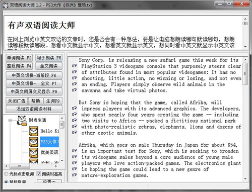 特定角度来看双语学习也是未来国内的主流,这也是国际多元文化的交流需求引发,这款有声双语阅读大师所有的功能项都有独立关联的相关快捷按键,且会自动完成本地加入双语材料的排版,以比较清晰干净的字体呈现给大家阅读,把不懂的地方多家复习巩固,反过来进行阅读理解是很好的办法。