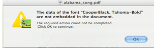 若是PDFtoMusic检测到文档中未嵌入的字体,将展示警报: